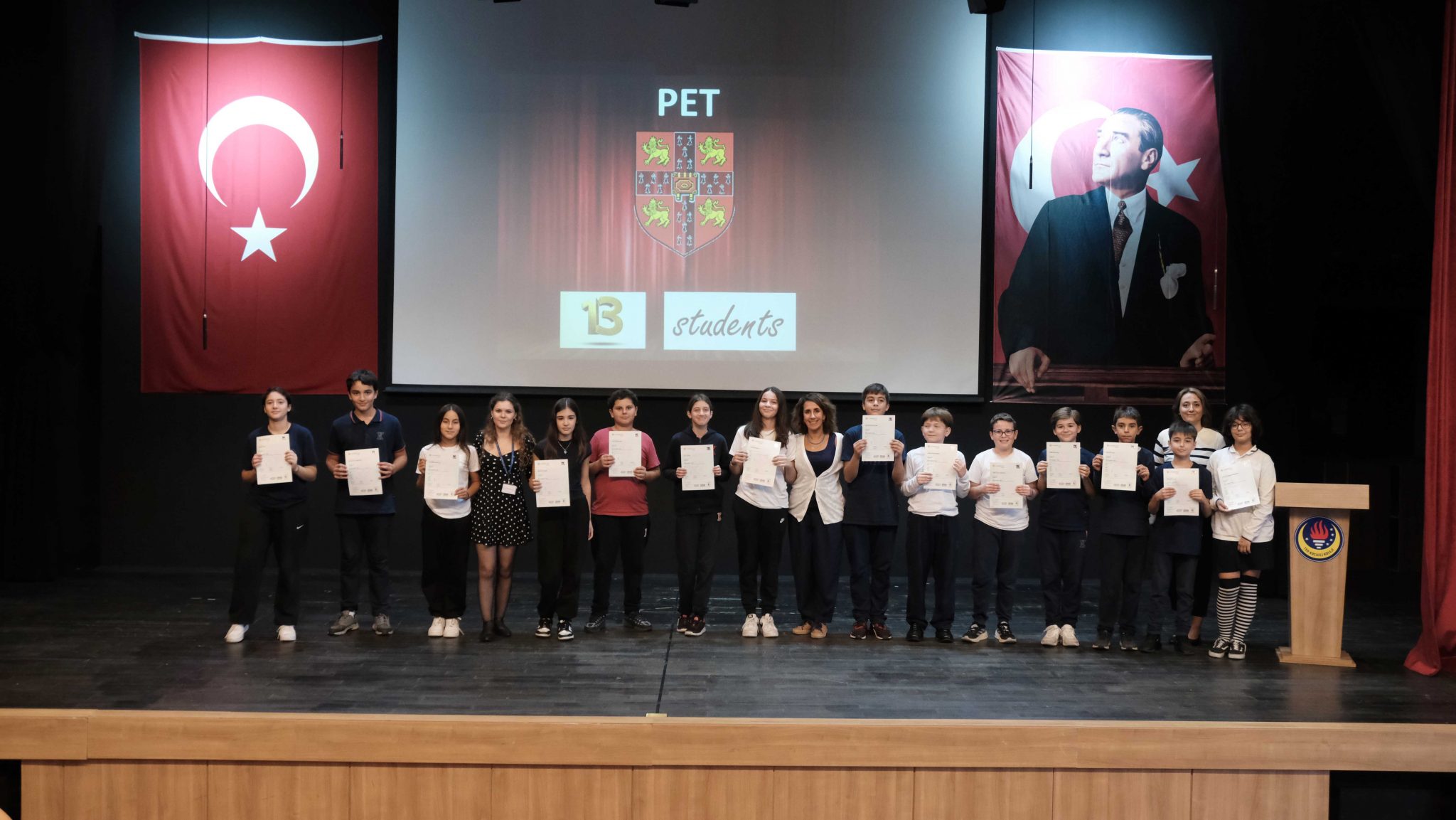 Bu yıl onuncusu gerçekleştirilen Cambridge Sertifika Töreni ile öğrencilerimiz, Starters, Movers, Flyers, KET (Key English Test) ve PET (Preliminary English Test), FCE sınavlarını başarıyla tamamlamış ve uluslararası geçerliliğe sahip sertifikalarını almaya hak kazanmışlardır.