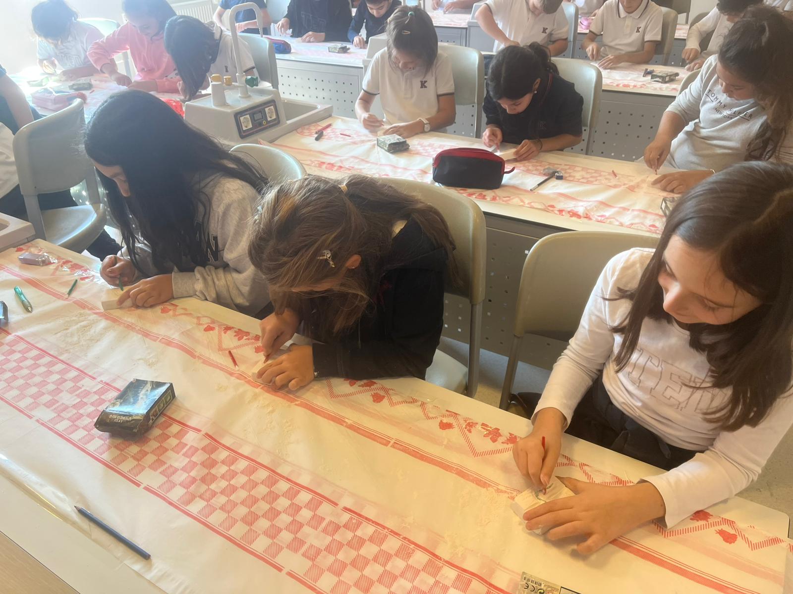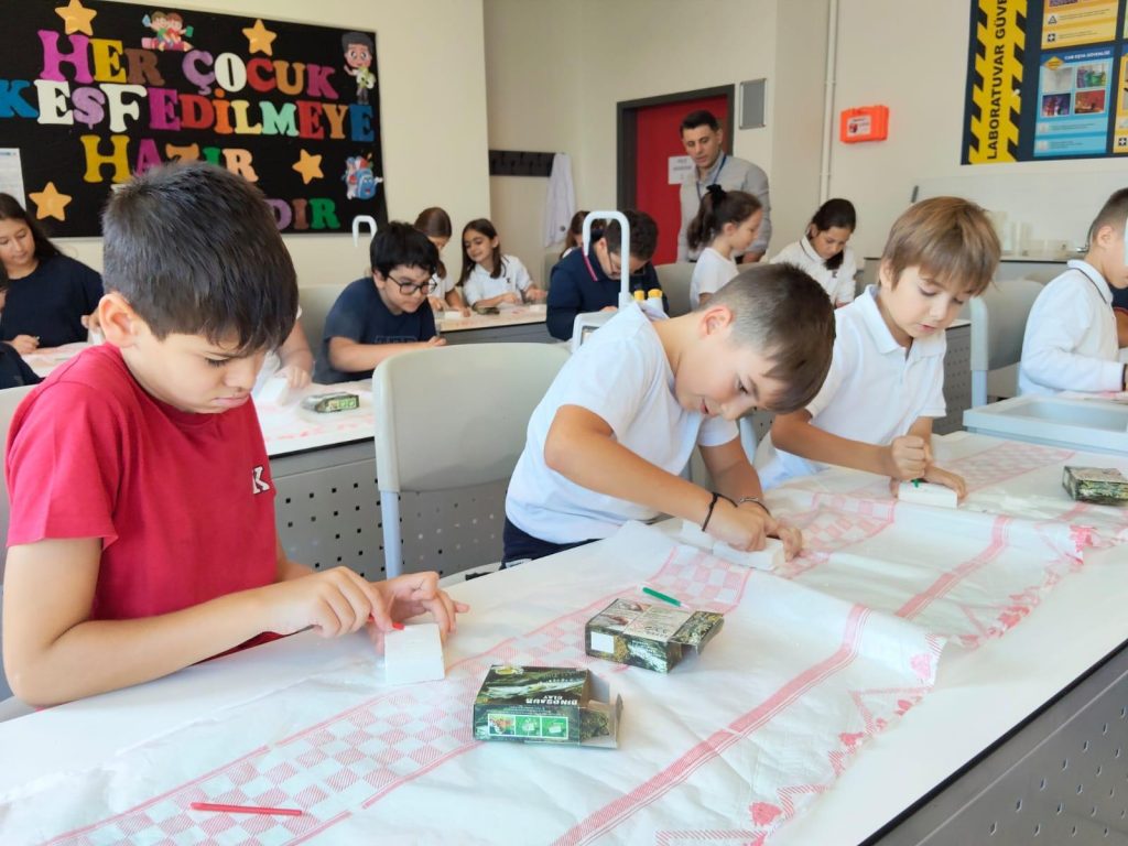 Bu etkinlik sayesinde öğrencilerimiz, milyonlarca yıl öncesinden günümüze ulaşan fosillerin nasıl oluştuğunu somut bir şekilde gözlemleme fırsatı buldular.