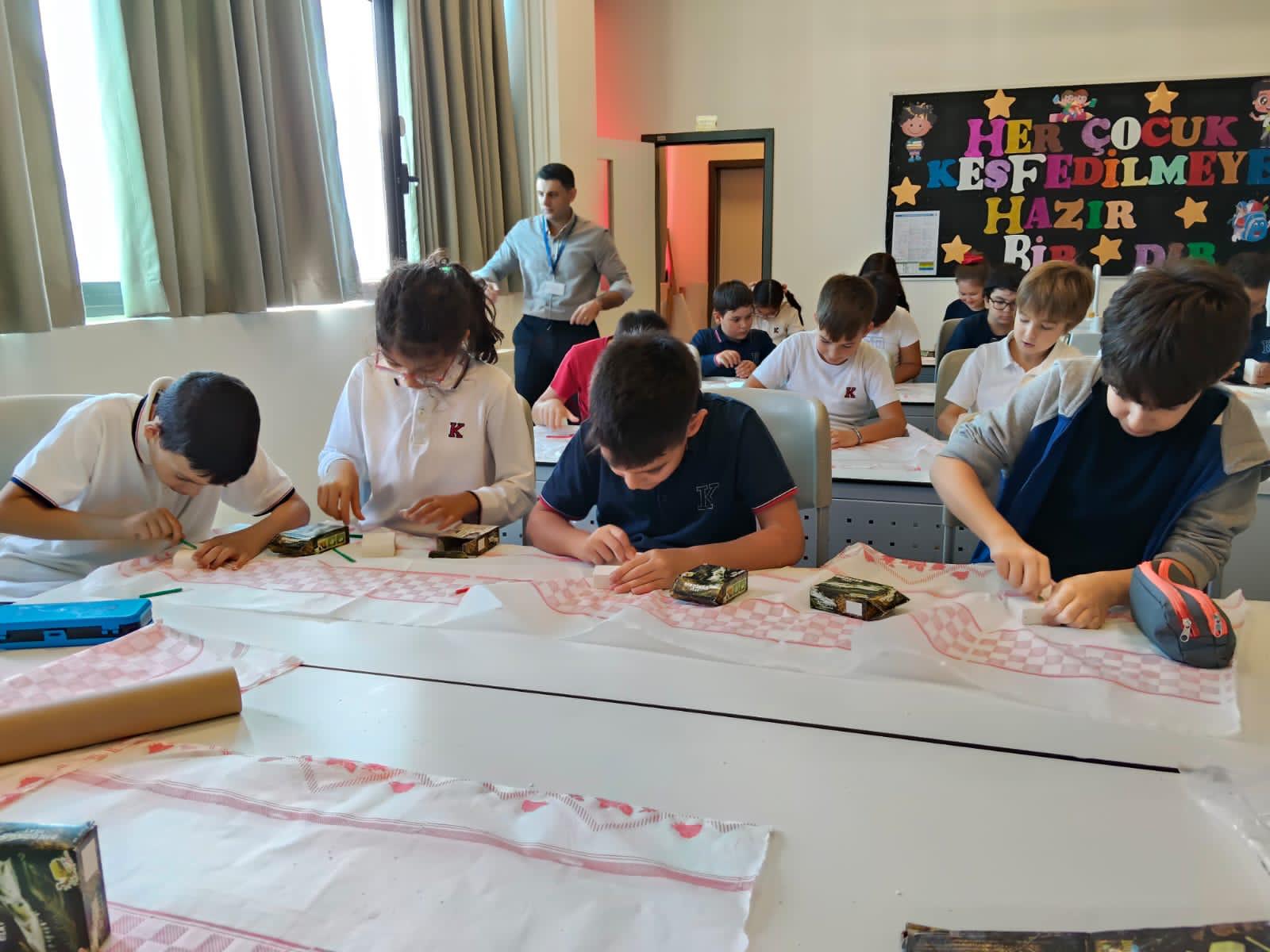 Gözlem kutularını kullanarak toprakta yaşayan küçük canlıları, yaprakları, taşları ve çiçekleri inceleyen öğrenciler, doğanın renklerini ve dokusunu yakından tanıma fırsatı buldu. Bu keyifli etkinliğin ardından, gözlemlerini etkinlik sayfalarına aktaran çocuklar hem eğlendi hem de doğayı keşfetmenin heyecanını yaşadı.
