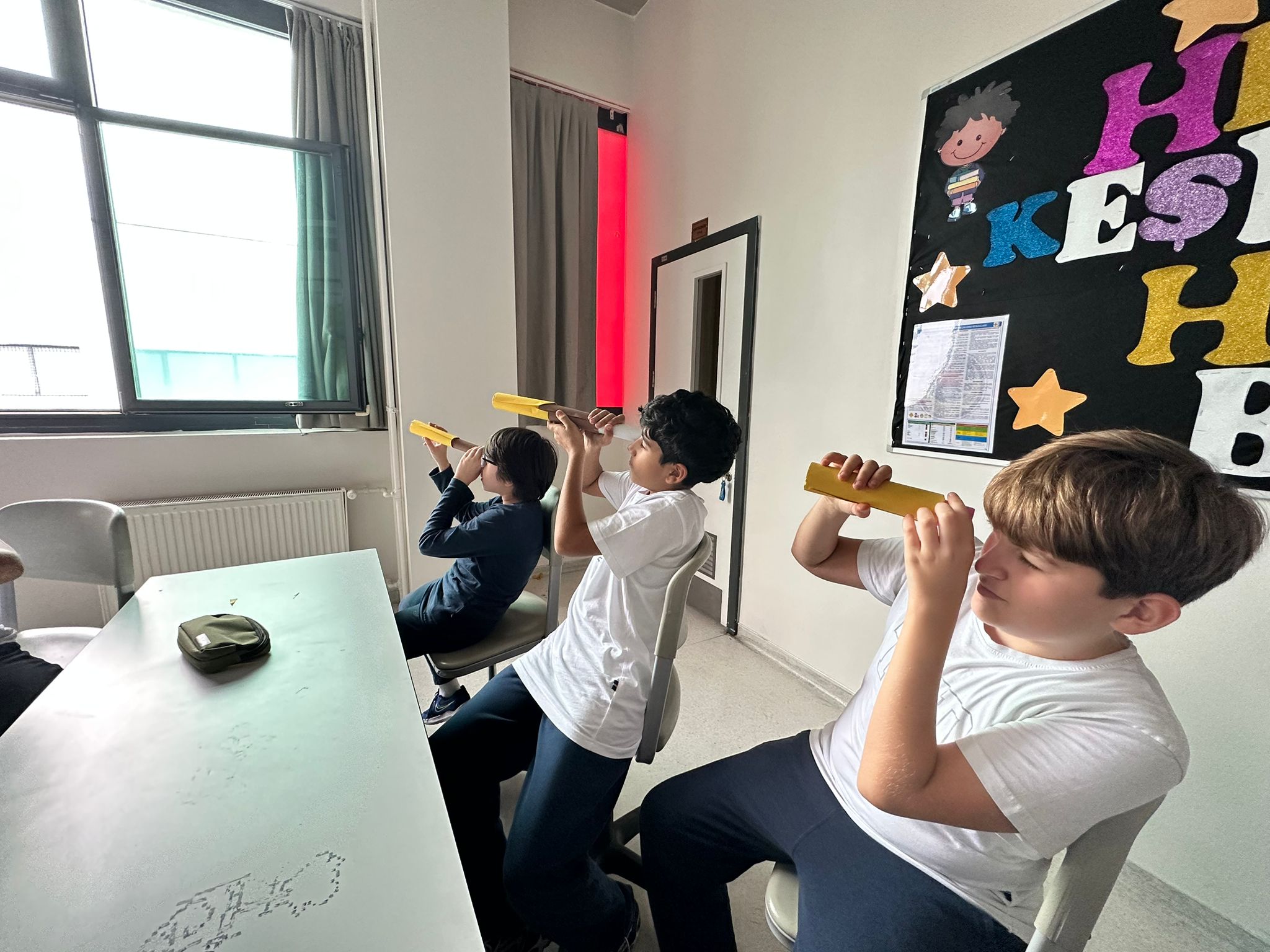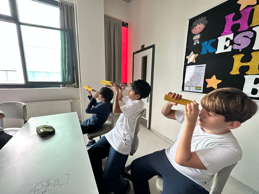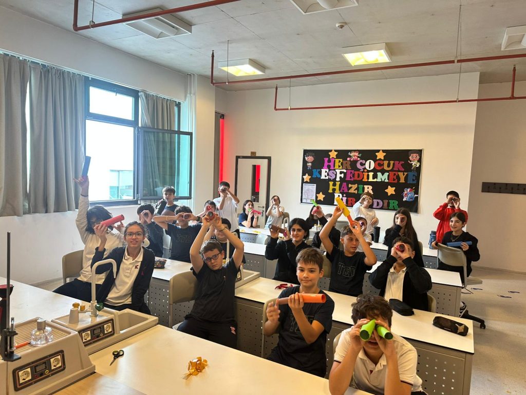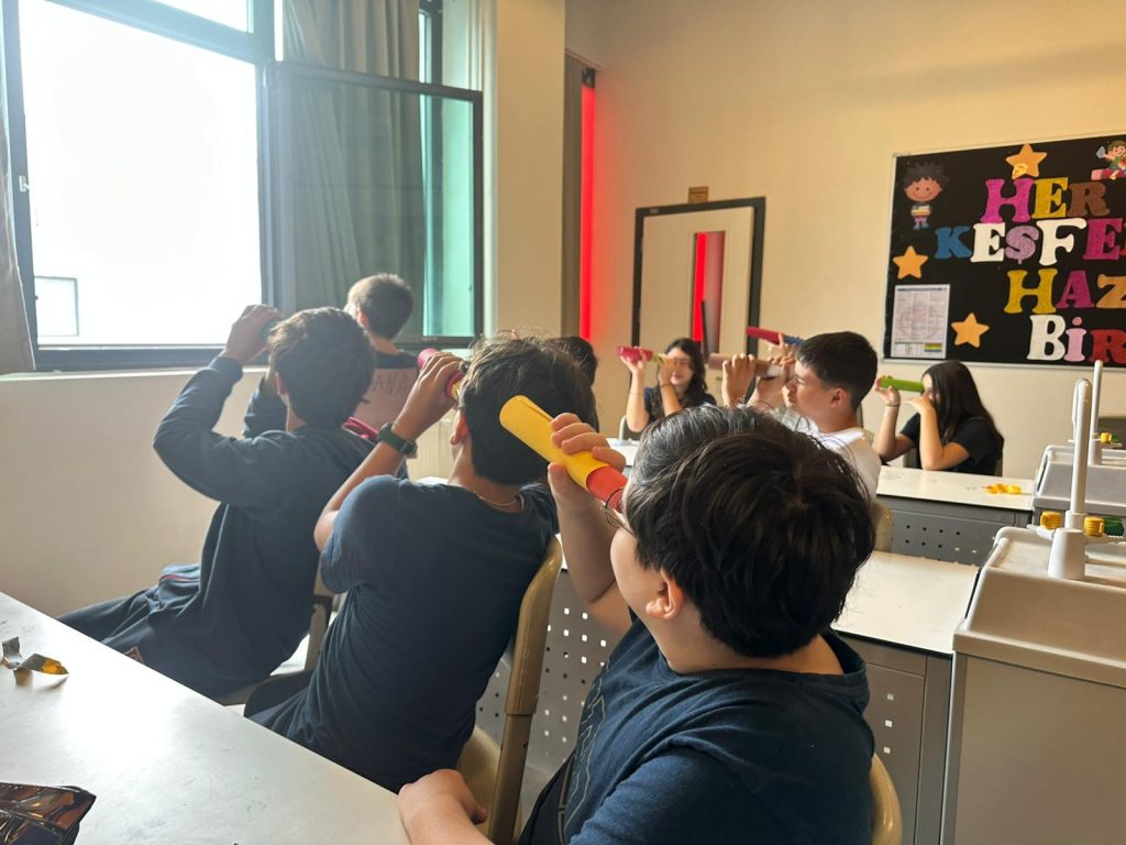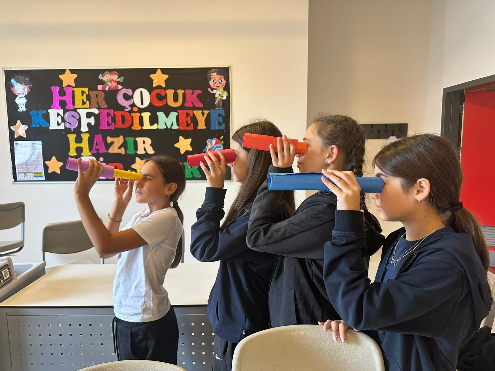 7. sınıf öğrencilerimiz ise, uzayı daha yakından tanımak ve gözlem yapmanın temellerini öğrenmek amacıyla kendi teleskoplarını tasarlayıp oluşturdu.