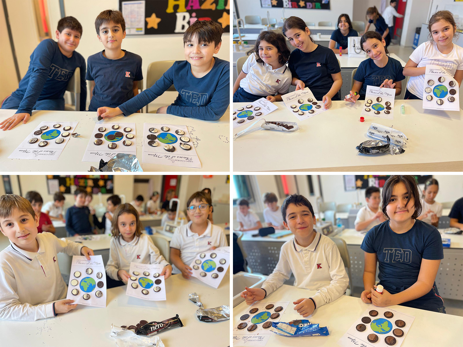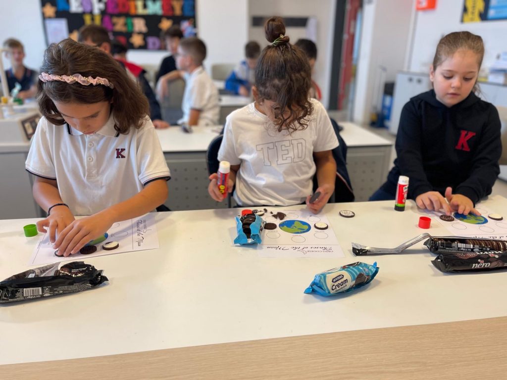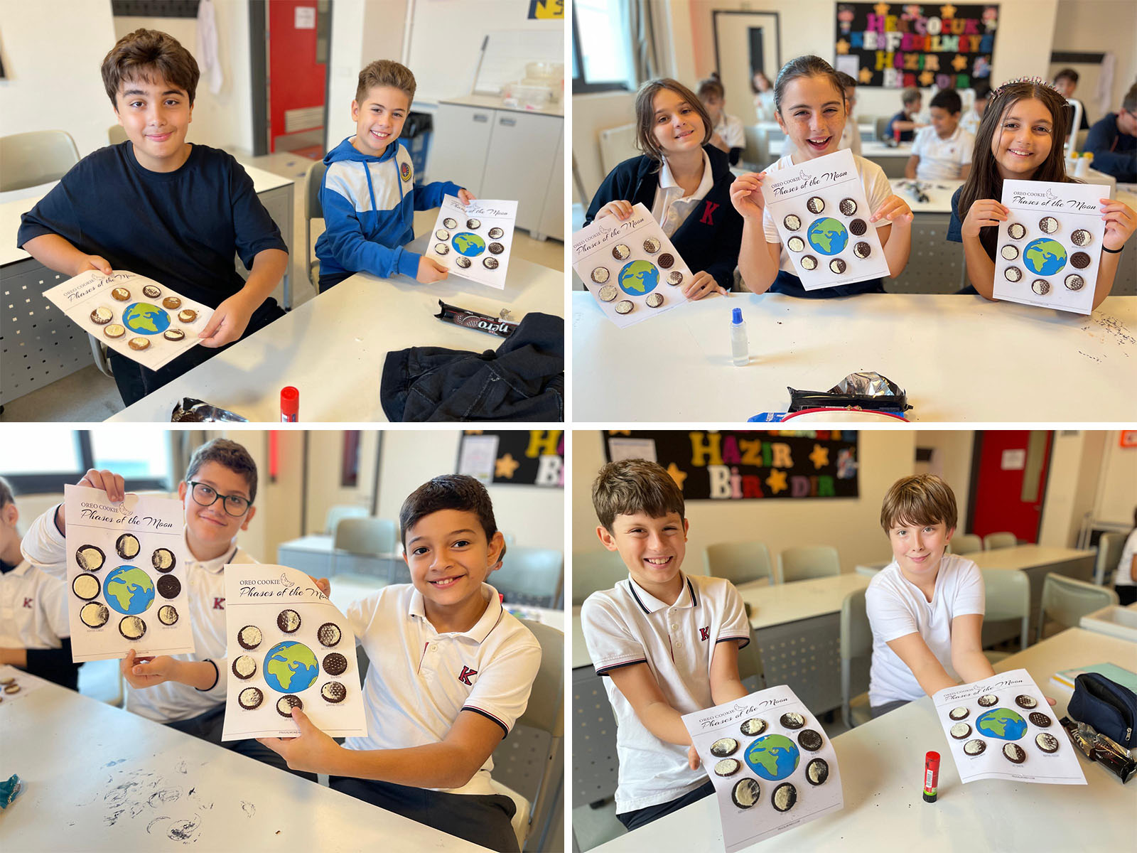 5. sınıf öğrencilerimiz Ay’ın hareketlerini ve görünümündeki değişimleri anlamak için bisküvileri kullanarak Ay’ın evrelerini modellediler ve Ay’ın Dünya etrafındaki döngüsünü somut bir şekilde gözlemlediler.