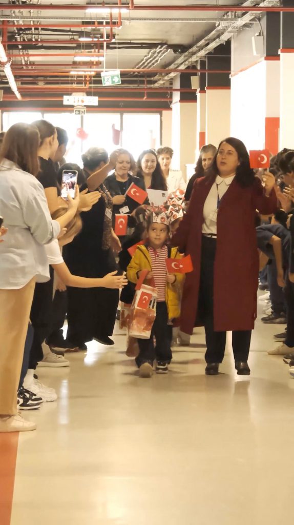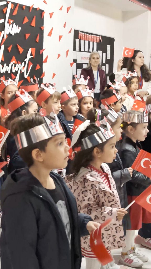 Okulumuzun camlı koridorunda piyano eşliğinde Cumhuriyet şarkıları söyledik. Yaratıcı sanat etkinlikleriyle okulumuzun girişine Cumhuriyet Panosu hazırladık. Türk bayrakları ve marşlar eşliğinde anasınıfı öğrencilerimizle tüm okul kademelerini kapsayan Cumhuriyet Yürüyüşü gerçekleştirdik. İlkokul, ortaokul ve lise öğrencilerimiz alkışlarla, marşlarla minik arkadaşlarına destek oldular.