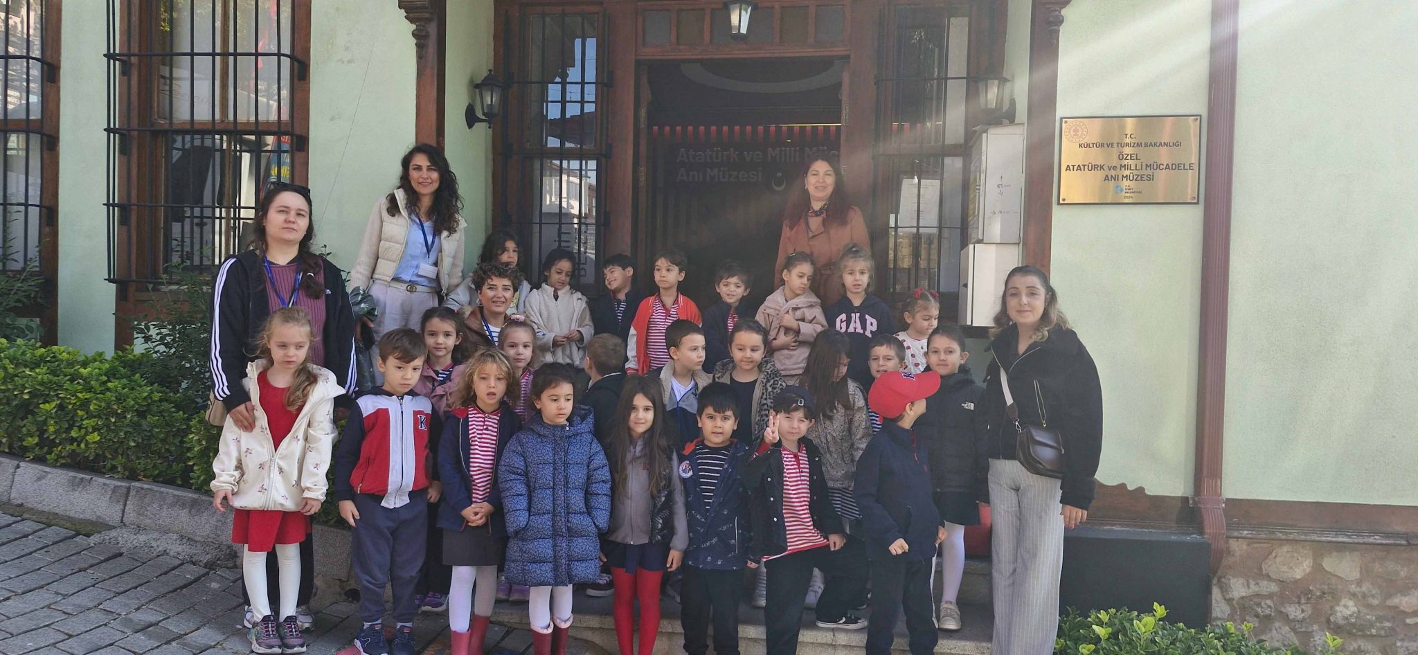 Öğrencilerimiz, 31 Ekim 2025 Cuma günü Atatürk ve Millî Mücadele Anı Evini ziyaret ederek Ulu Önder Mustafa Kemal Atatürk’ün hayatına ve Cumhuriyetimizin kuruluş sürecine yakından tanıklık ettiler. Ziyaret boyunca minik öğrencilerimiz; Atatürk’ün yaşam öyküsünü, Millî Mücadele dönemini ve Cumhuriyet’in kazanımlarını yaşlarına uygun anlatımlarla dinlediler.