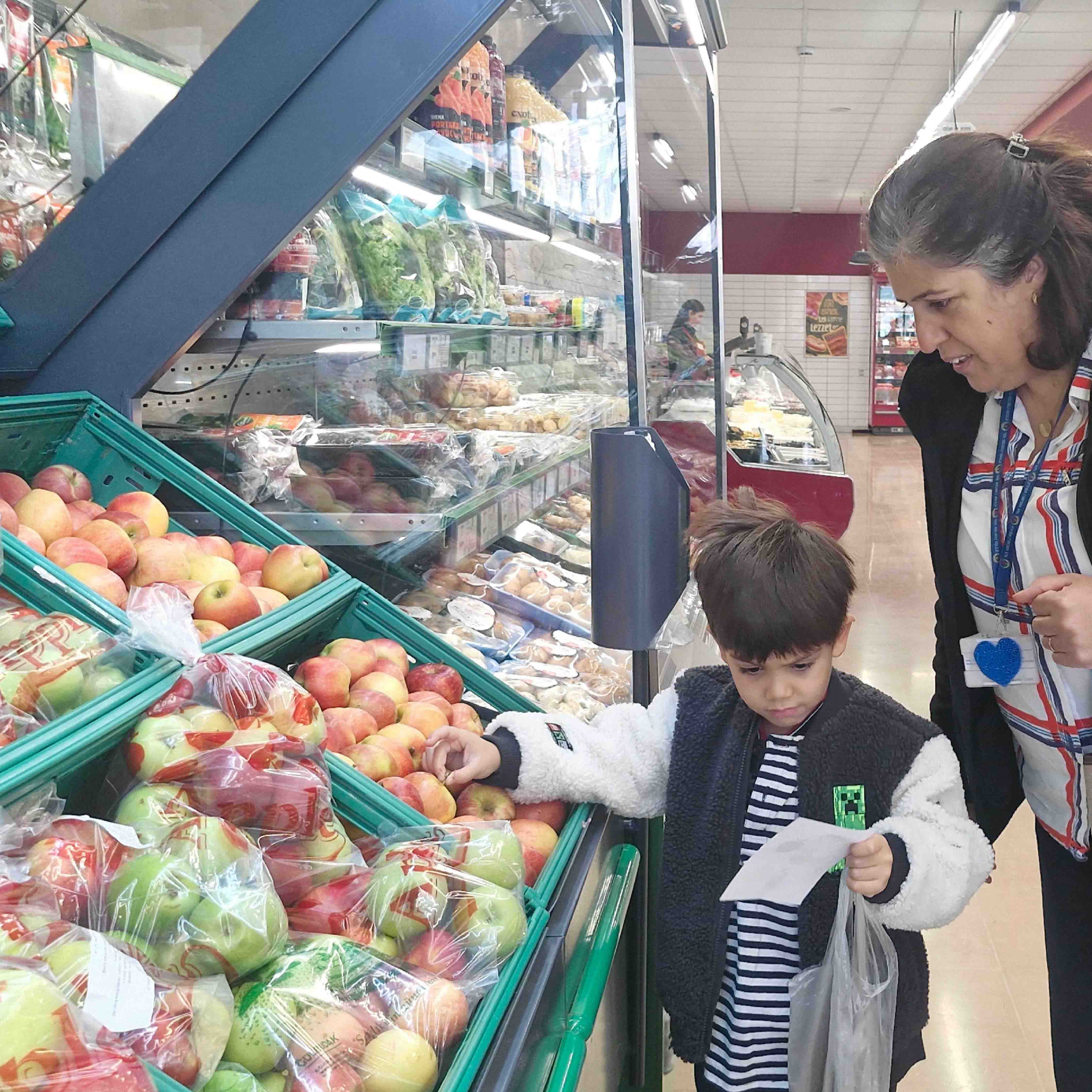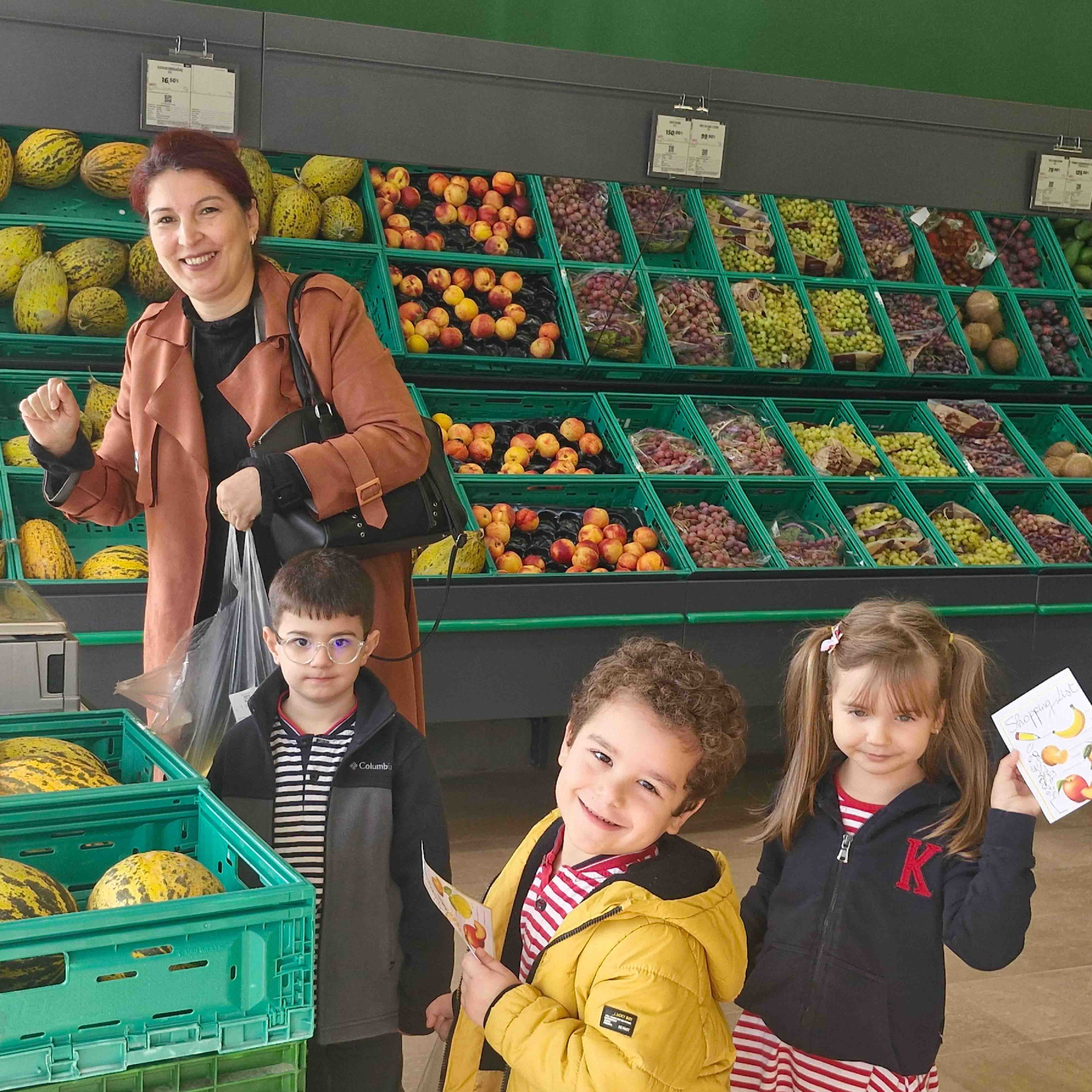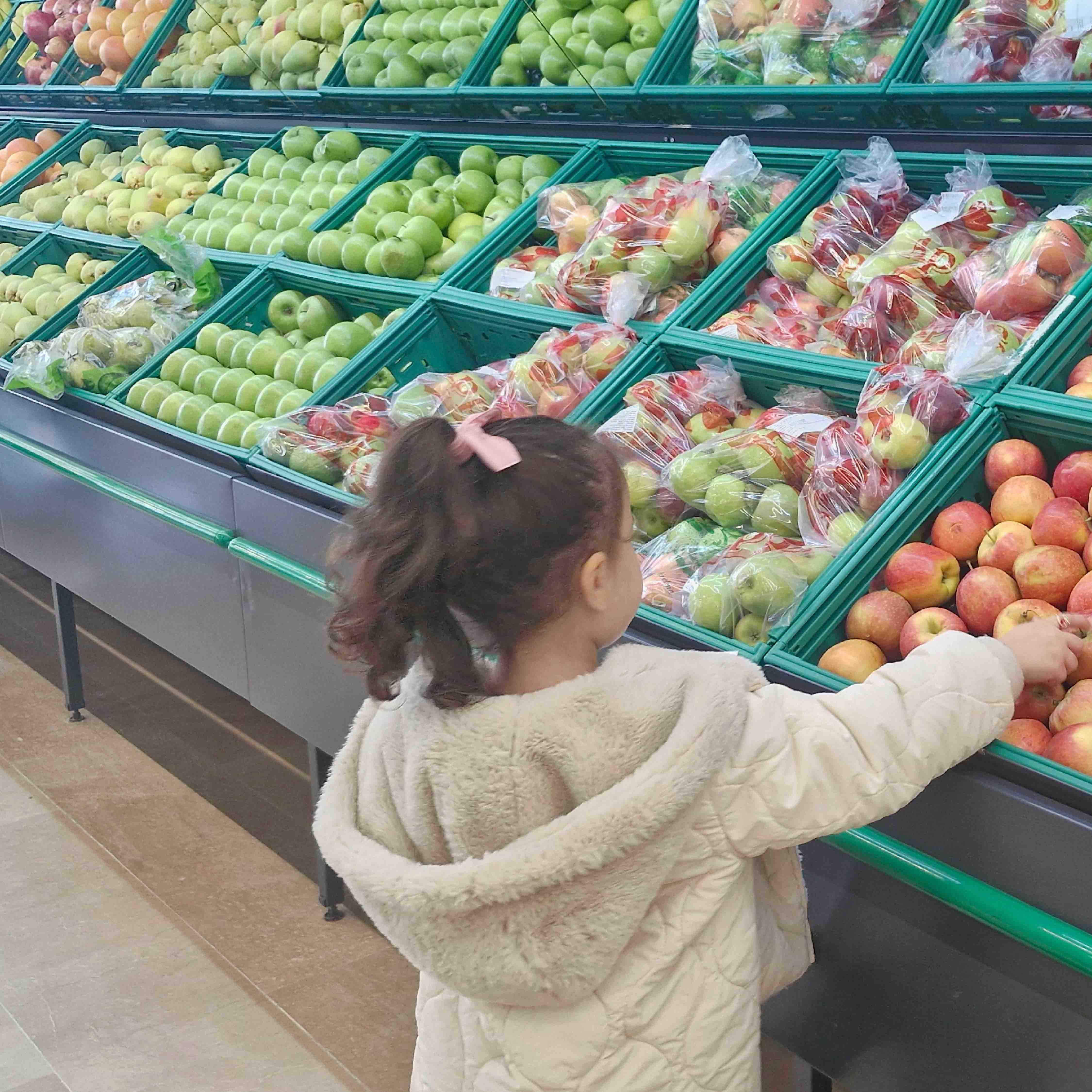 Öğrenciler, öğretmenleri eşliğinde marketteki manav tezgâhlarını gezerek sebze ve meyveleri yakından tanıdı; renkleri, kokuları ve faydaları hakkında bilgi edindi. Alışveriş listesi hazırlamanın önemi üzerine sohbet ettiler; “sağlıklı–sağlıksız”, “az–çok” ve “kilo” kavramlarını öğrendiler, meyvelerle ritmik sayma etkinlikleri yaptılar.