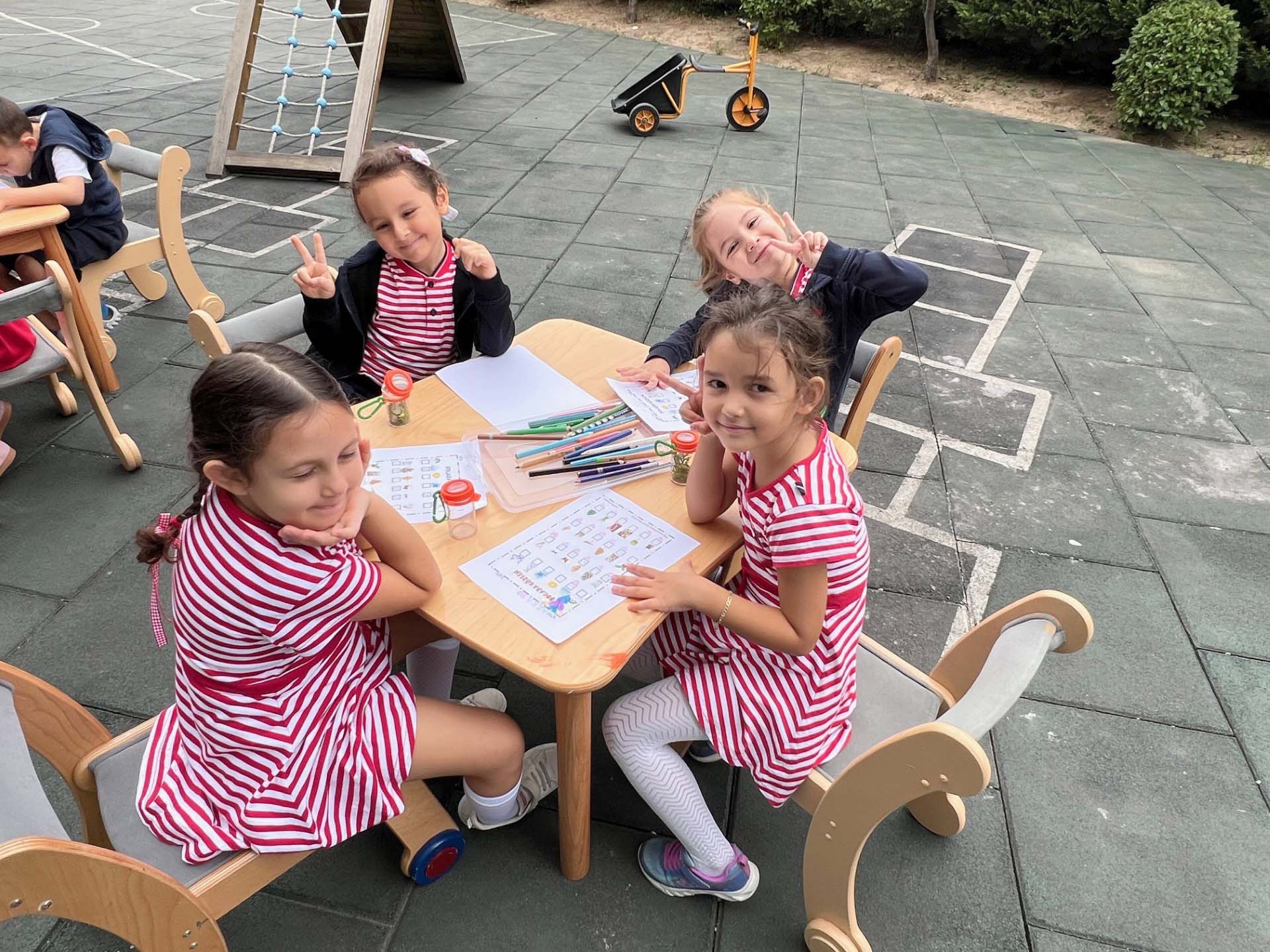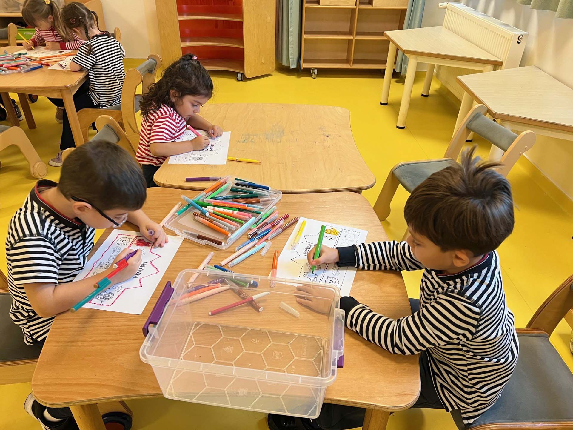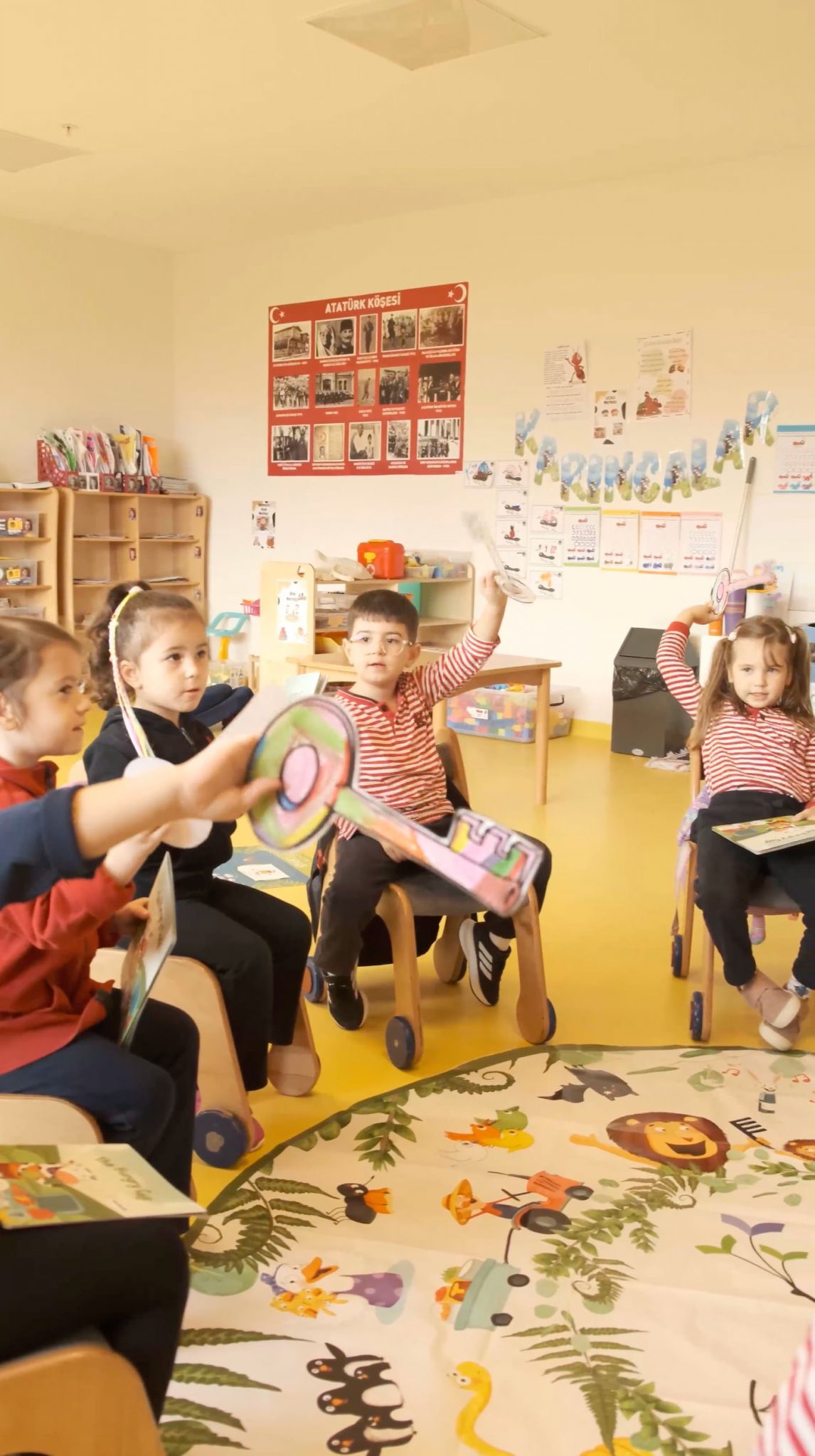 İngilizce Hikâye anlatımı, kelime oyunları ve neşeli şarkılarla yeni kelimeler öğrenen minik öğrencilerimiz, dil ediniminde büyük yeri olan dinleme becerilerini geliştirdiler. 21.yüzyılın en kıymetli becerilerinden olan “Eleştirel Düşünme” nin ilk adımlarını hikâyeleri eğlenceli bir şekilde canlandırarak ve onları yeniden anlatarak attılar. Böylece hem İngilizce düşünmenin hem de kendi seslerine aşina olarak farklı bir dilde ifade becerileri geliştirmenin kapılarını araladılar.