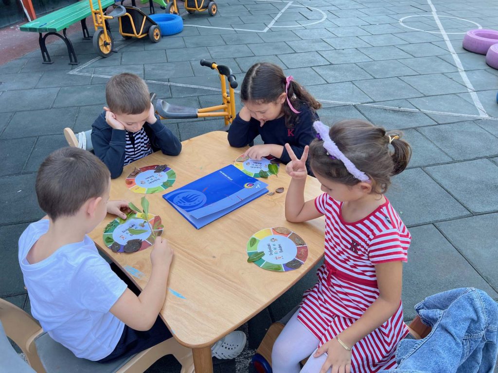 Yaprakların yeşilini, toprağın kahverengisini, gökyüzünün mavisini ve çiçeklerin canlı tonlarını inceleyen minik öğrenciler, doğanın büyüleyici renk dünyasında keyifli bir yolculuğa çıktılar.