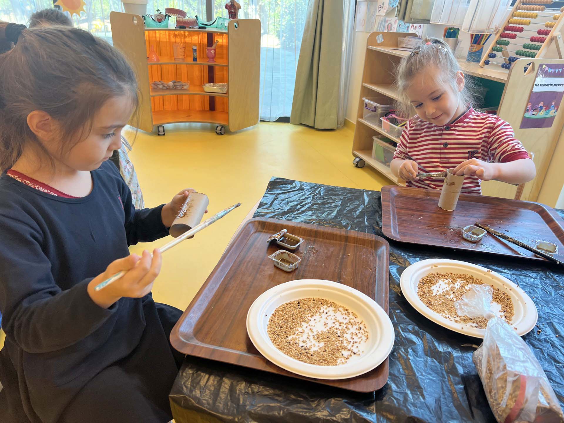 Doğadaki canlıların da yaşam hakkına saygı duymanın önemini kavrayan çocuklar, kuş dostlarımız için kuş yemliği tasarladılar. Ardından kendi yaptıkları yemlikleri okul bahçesindeki ağaçlara asarak kuşları beslemenin mutluluğunu yaşadılar.