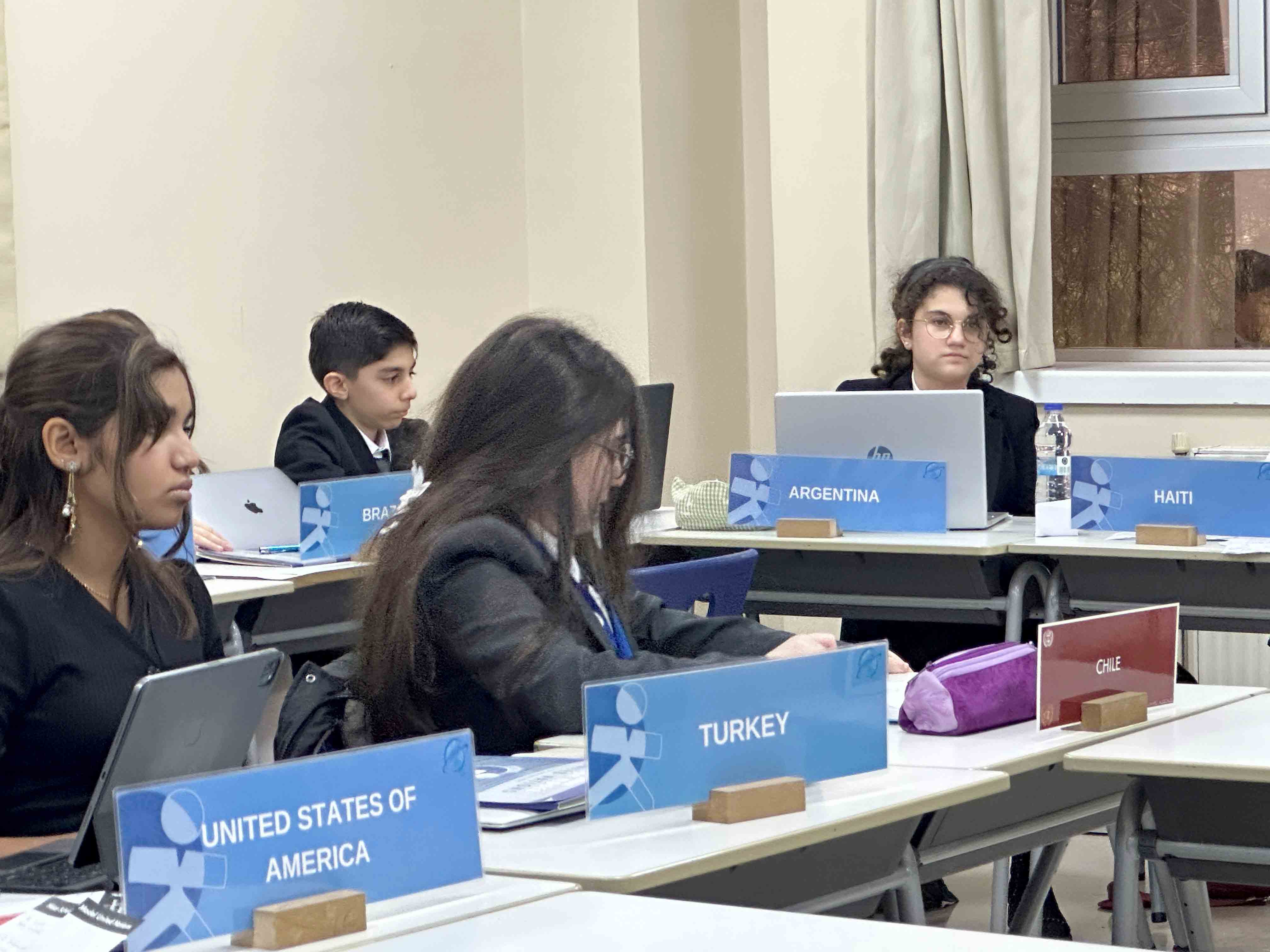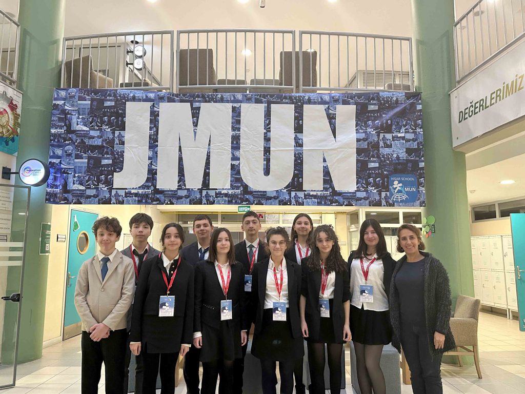 Bu yıl, JMUN Kulübü öğretmenimiz Burcu Pehlivan rehberliğinde, “Şiddetli Siyasi Kutuplaşma ve Aşırılık Çağında Yapıcı Söylemi Teşvik Ederek Demokrasiyi Korumak” temalı konferansa katılan 10 öğrencimiz; Nepal, Danimarka ve Arjantin delegeleri olarak görev aldılar. Silahsızlanma, Ekonomi, Çevresel Sorunlar, İnsani, Siyasi, Hukuki, Ekonomik ve Sosyal Konsey ile UNICEF komitelerinde dünya sorunlarına çözüm önerileri sunan öğrencilerimiz, etkili ve verimli bir konferans geçirdiler ve okulumuzu başarıyla temsil ettiler.