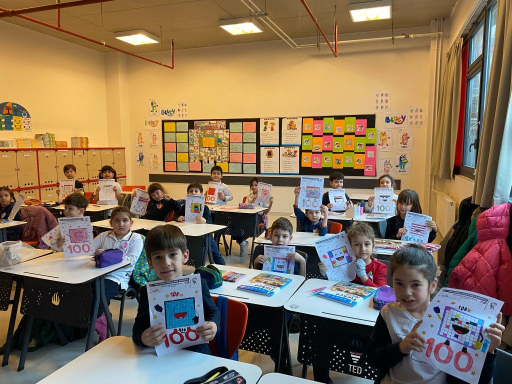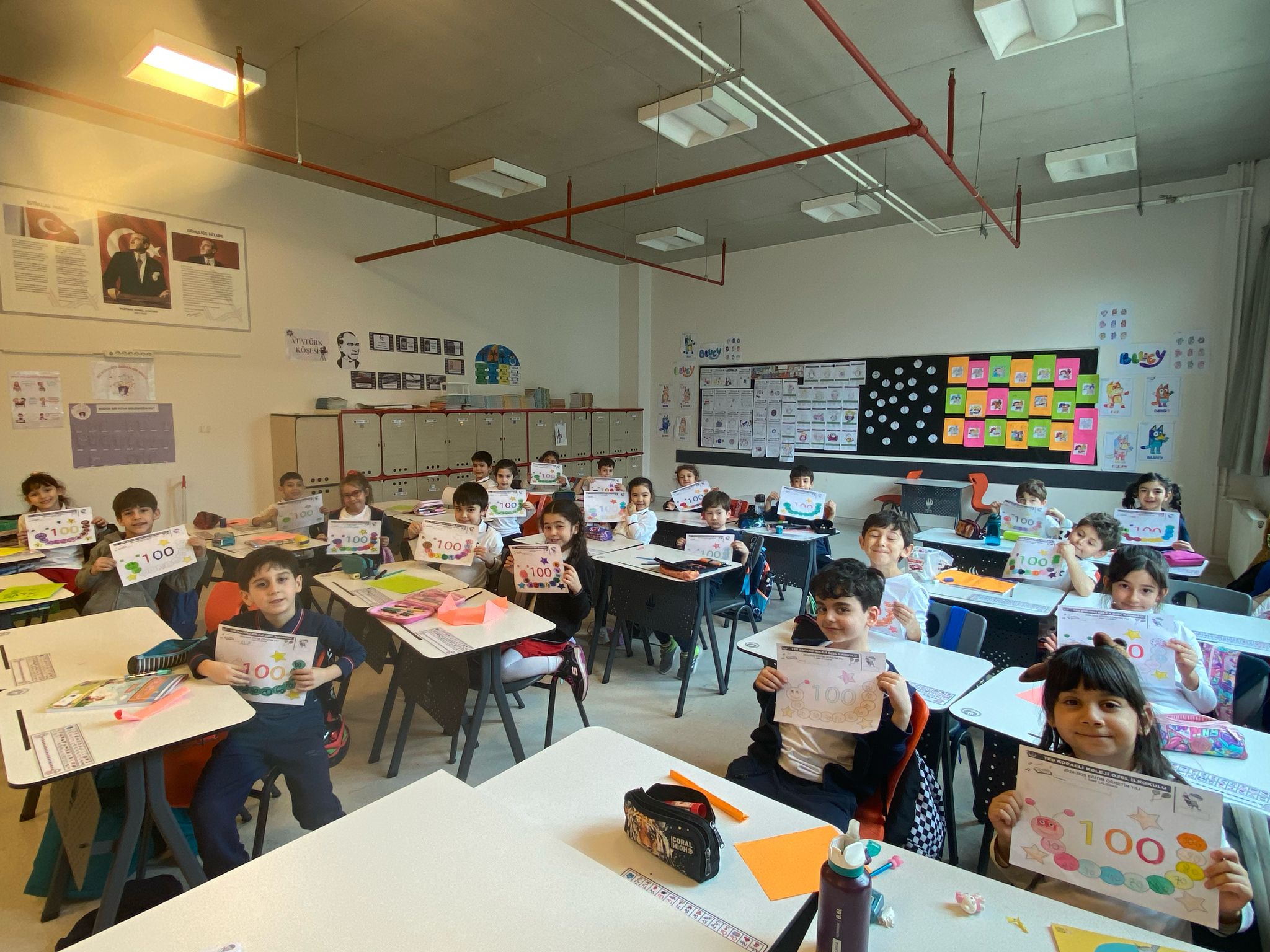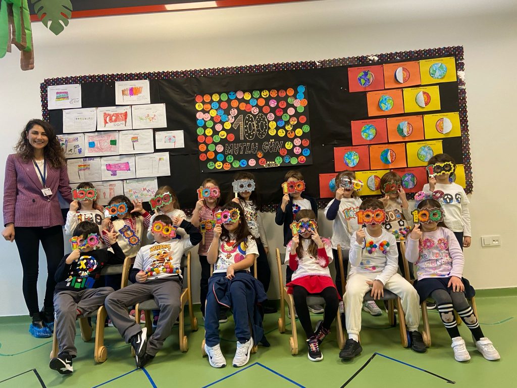 1. Sınıf öğrencileri ise; yüz gün boyunca öğrendikleri bilgiyi ve edindikleri becerileri pekiştirerek Türkçe ve İngilizce olan eğlenceli etkinlikler eşliğinde keyifli vakit geçirdiler. Bu özel gün kapsamında düzenlenen etkinliklerde, sayma becerileri geliştiren oyunlar oynandı ve birbirinden eğlenceli etkinliklerle dolu bir gün geçirildi.
