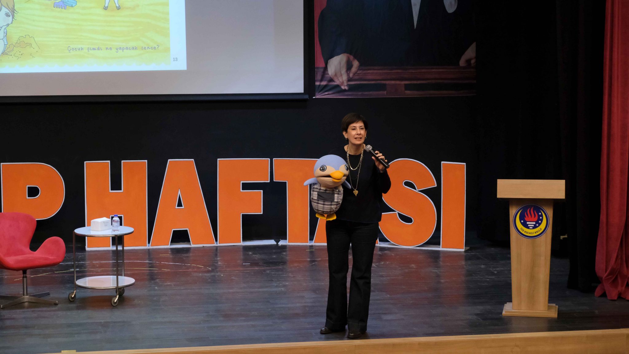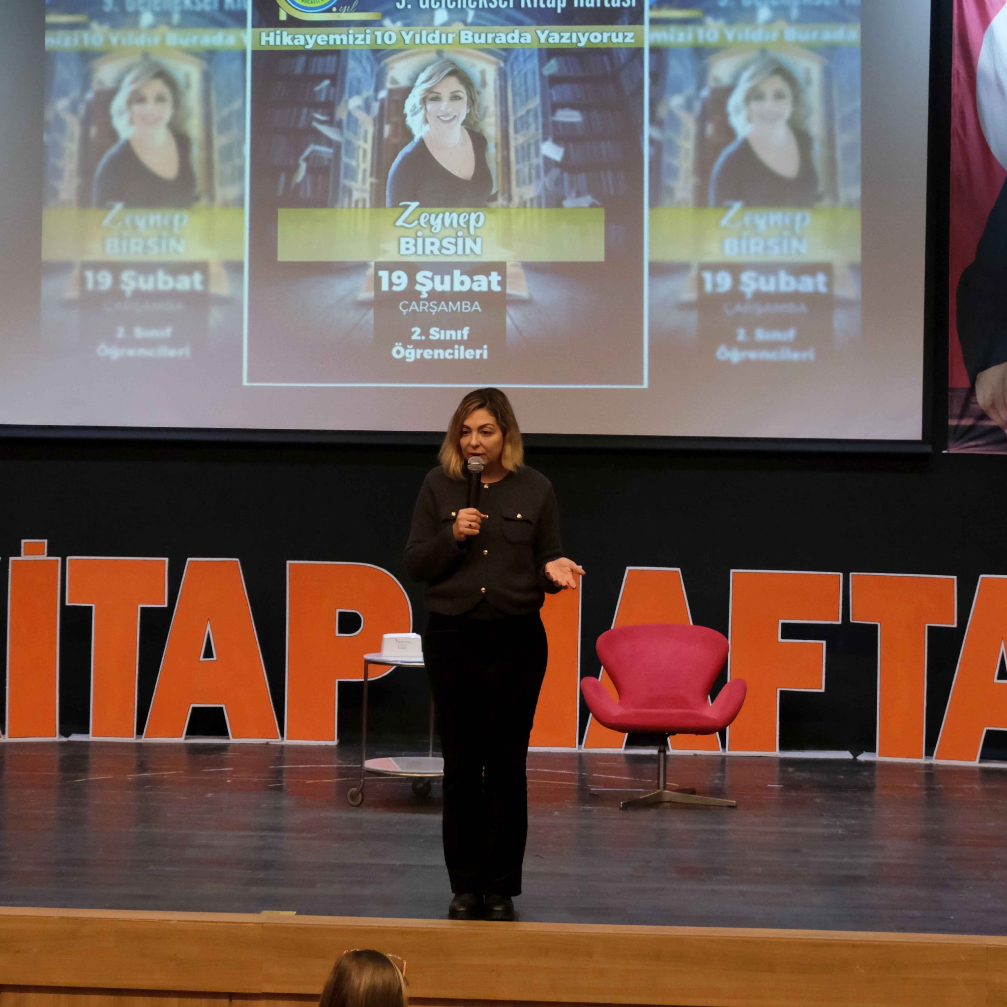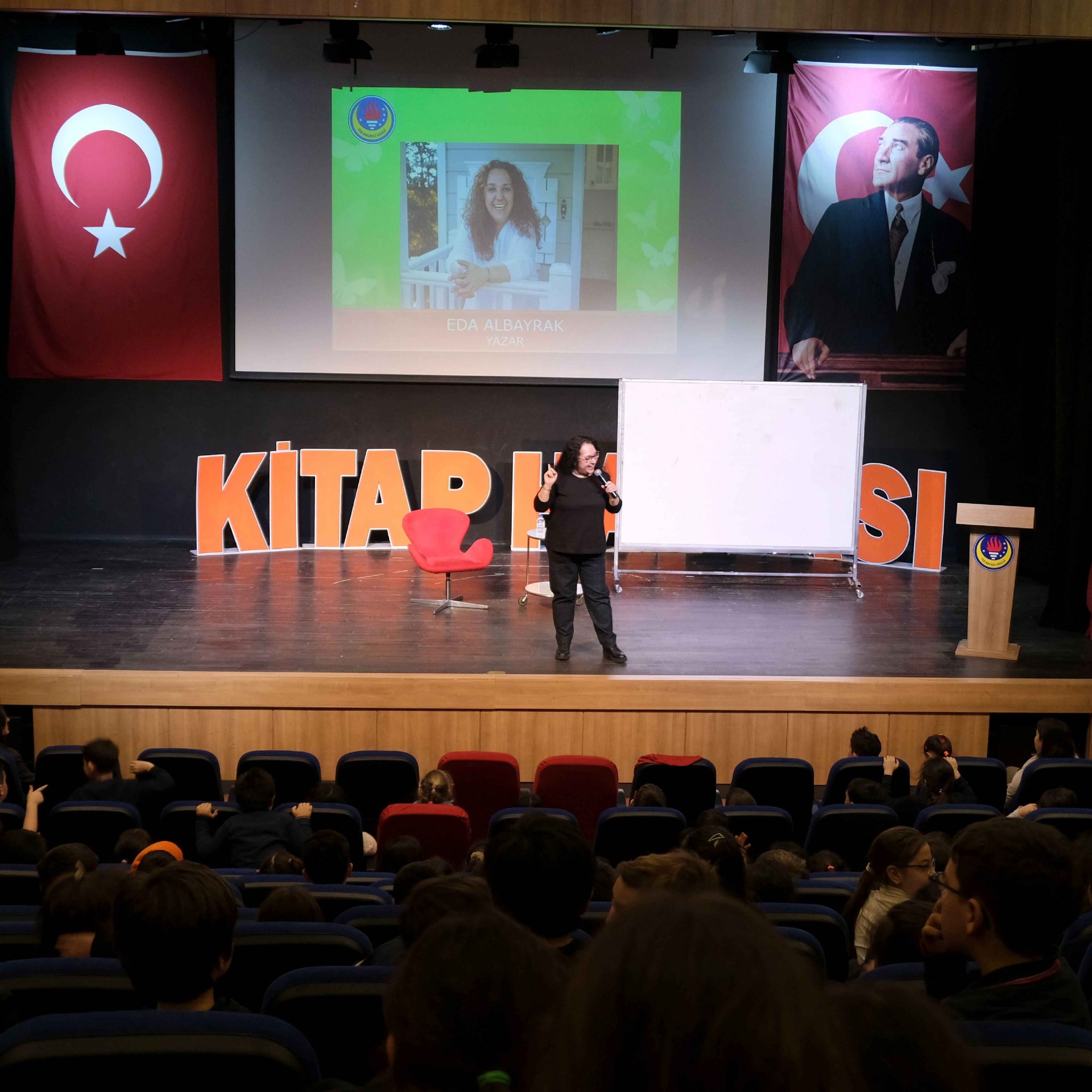 Öğrencilerimiz, yazarımızın ilham verici hikayelerini dinleyerek okuma sevgisini pekiştirirken, kitaplar üzerine sohbet etme fırsatı buldular. Yazarımız interaktif bir sunum yoluyla kitap kahramanlarını adeta öğrencilerimizle buluşturdu.