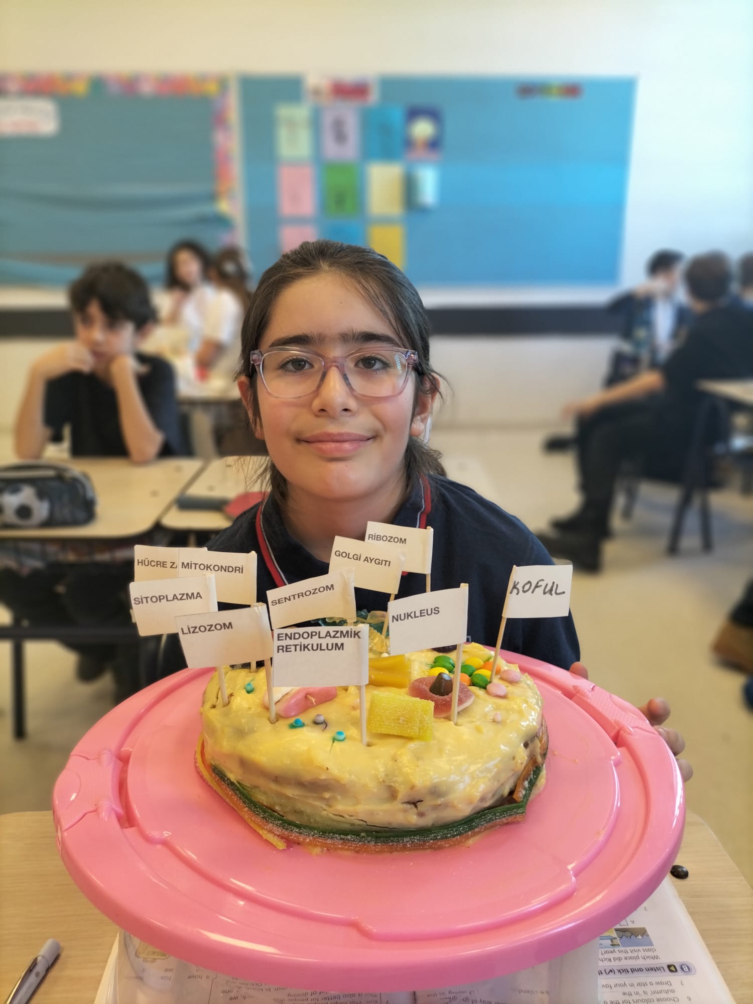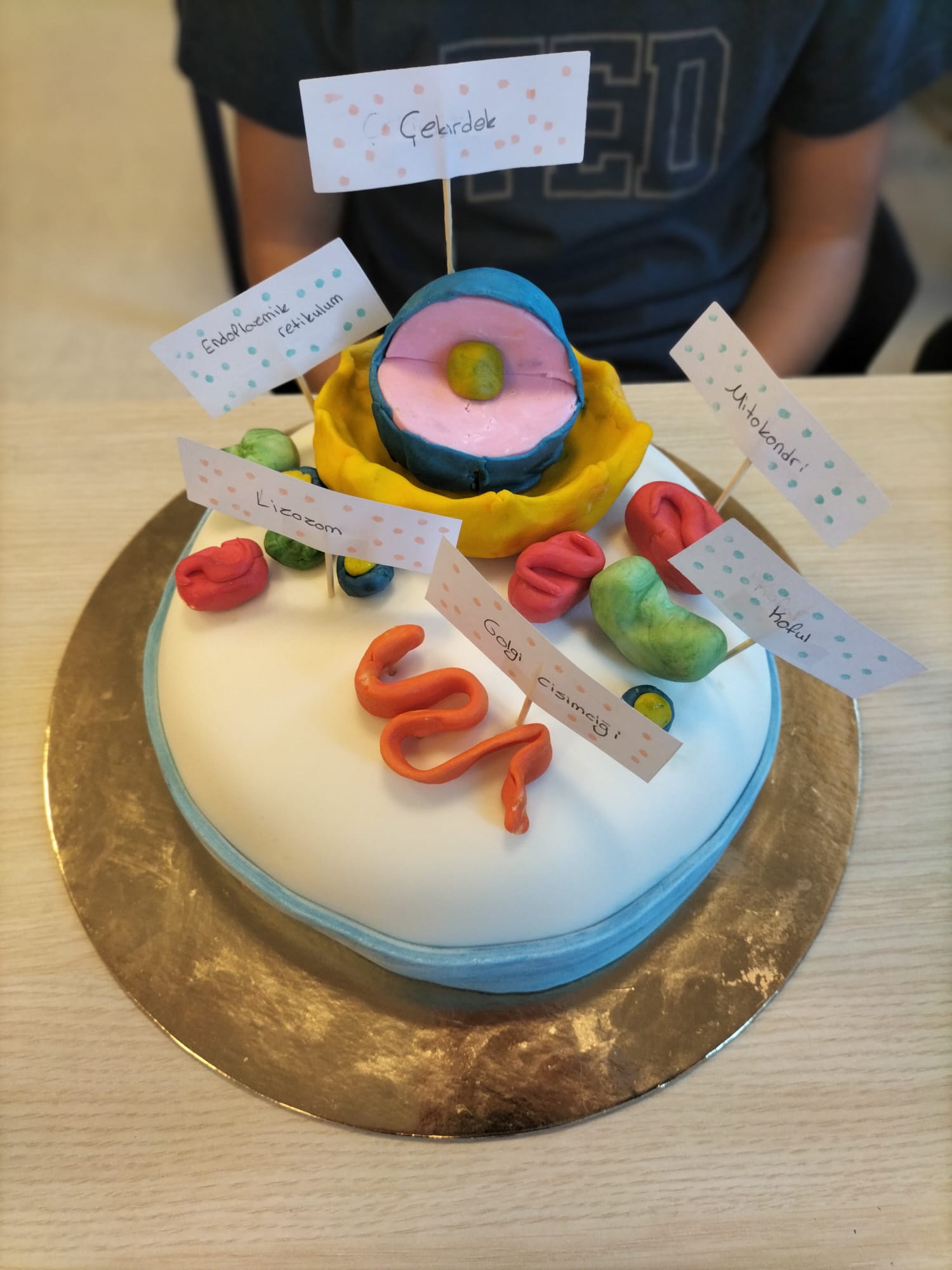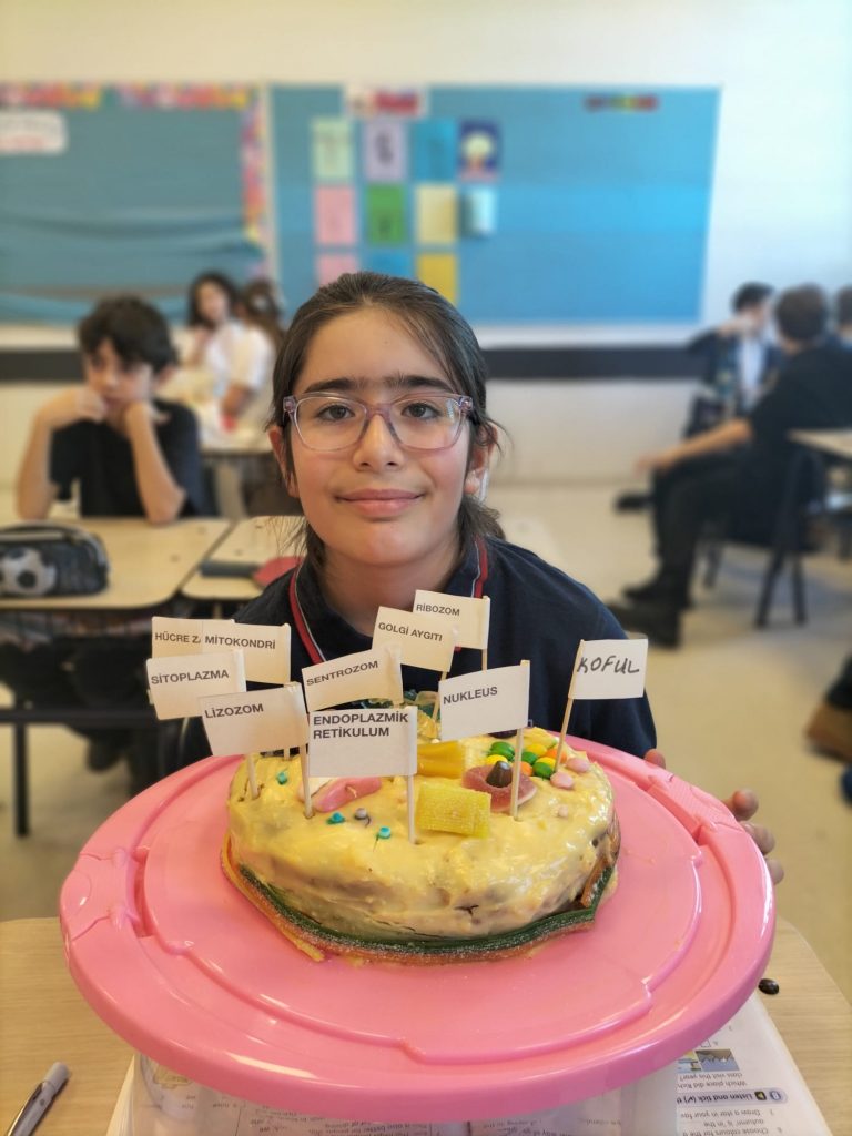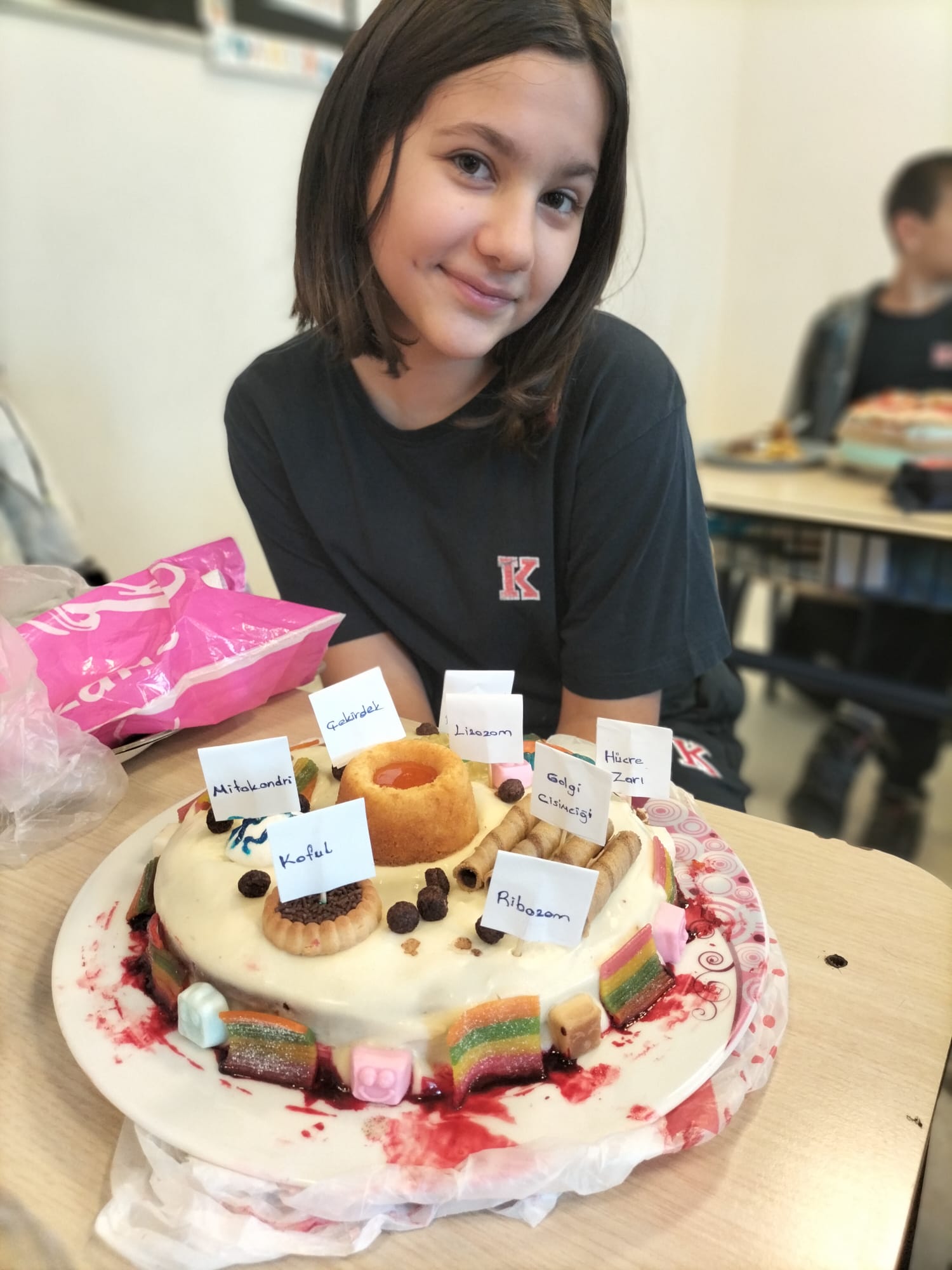 Etkinlik boyunca öğrenciler, hücre zarını, çekirdeği, sitoplazmayı ve diğer hücre organellerini yenilebilir malzemeler kullanarak modelledi. Hem görsel hem de tat duyularına hitap eden bu çalışma, öğrencilerin hücre yapısını somutlaştırmalarına yardımcı oldu. Eğlenerek öğrenmenin en güzel örneklerinden biri olan bu etkinlik, öğrencilerin bilime olan ilgisini artırdı.