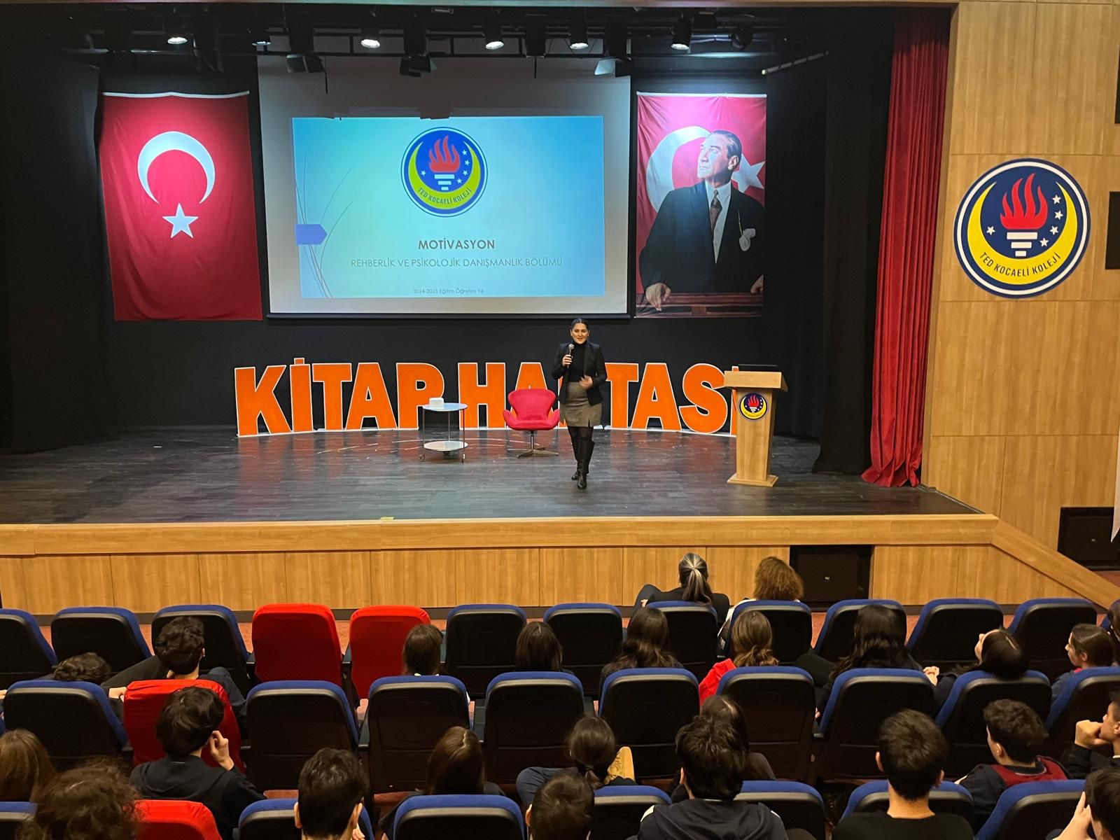 Sunumda “Motivasyon Nedir?”, “Motivasyon Etkenleri”, “Öğrenilmiş Çaresizlik” ve “Nasıl Başarılı Olunur?” başlıkları ele alındı. Öğrencilerimizin aktif katılımıyla gerçekleşen bu verimli etkinlik, sınav sürecinde motivasyonu artırma ve başarıyı destekleme konusunda önemli bilgiler sundu.