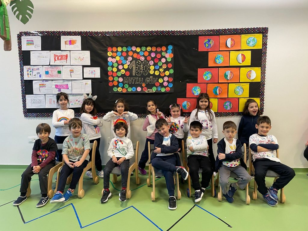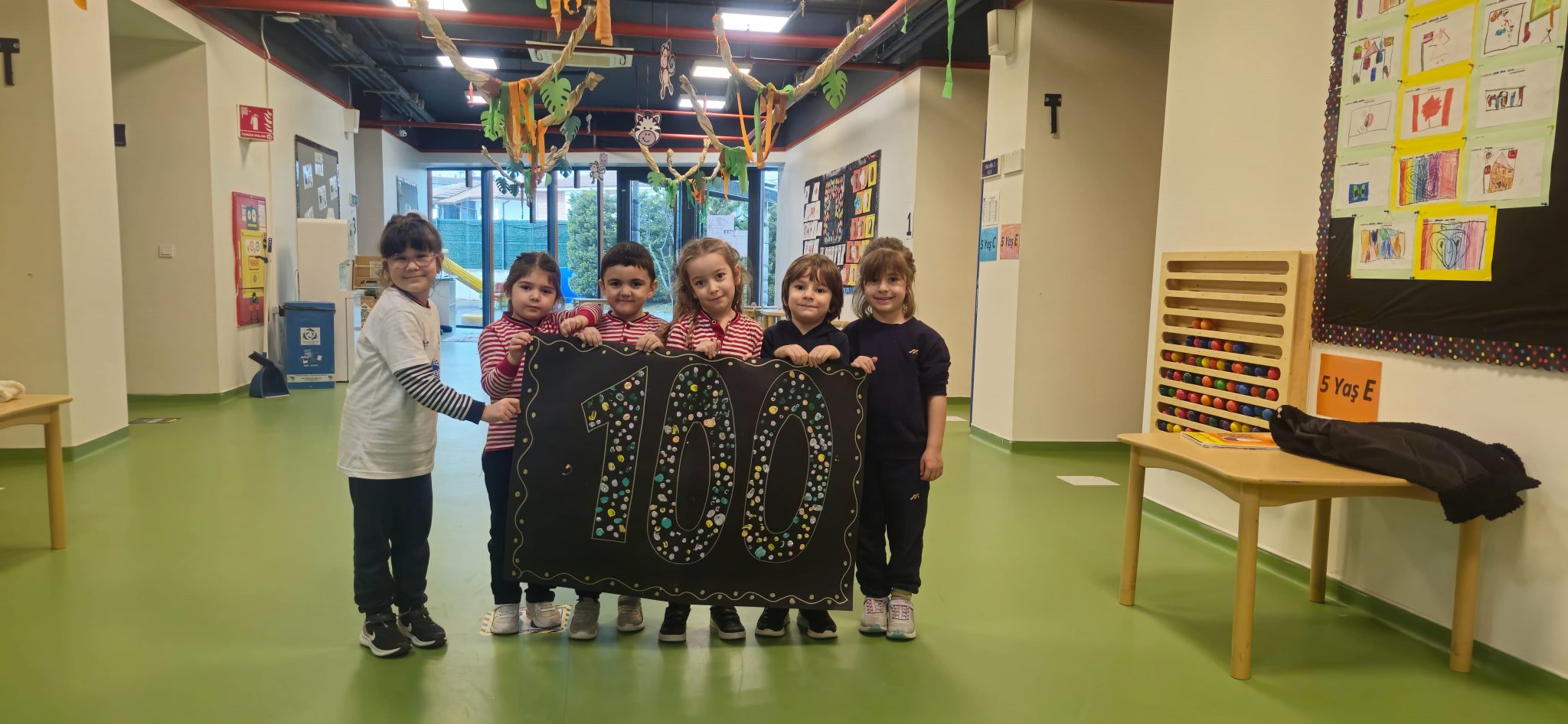 Okulların açıldığı ilk günden itibaren her gün yapılan takvim çalışmalarıyla 100. güne kadar ritmik saymalar, nesnelerle gruplama ve renkli 100 damla deneyleri gibi eğlenceli matematiksel etkinliklerle becerilerini geliştiren Anasınıfı öğrencileri, 100. Gün Parkurunda çeşitli görevleri tamamladılar, tasarladıkları birbirinden güzel tişörtleri kırmızı halı üzerinde sergilediler.
